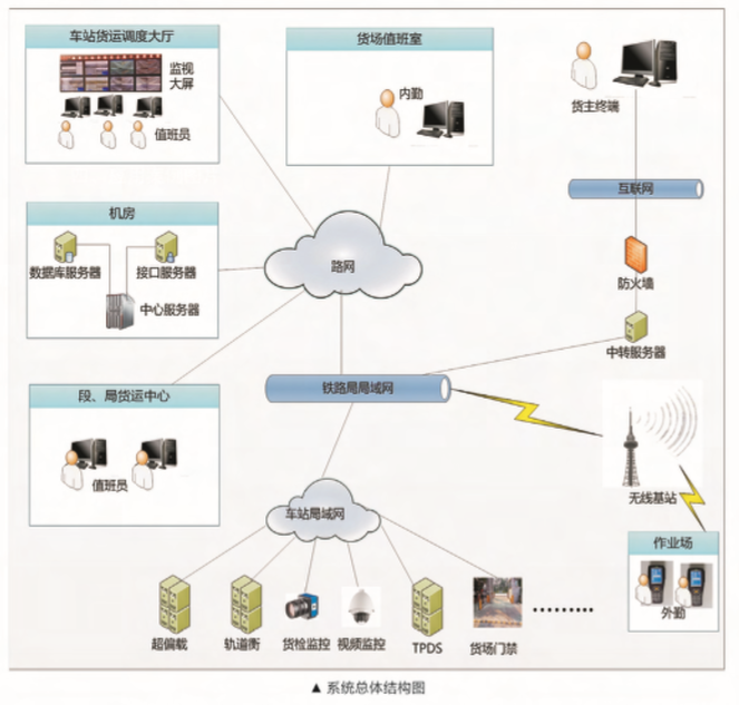 貨運站安全檢測與信息管理系統(tǒng)在整合既有貨運安全檢測監(jiān)控設備設施、信息等資源的基礎上,以 確保貨運安全為目標,建設統(tǒng)一的貨運安全檢測監(jiān)控與管理平臺,對鐵路貨物運輸過程進行全方位、全 覆蓋的綜合檢測監(jiān)控與管理;采用大數(shù)據(jù)分析技術,通過對日常管理作業(yè)數(shù)據(jù)的采集、存儲、提取分析 后,對處理后的量化數(shù)據(jù)進行綜合評估,從而發(fā)現(xiàn)原始作業(yè)管理模式中存在的問題,利用數(shù)字化的展現(xiàn) 將貨運整體工作內(nèi)容進行優(yōu)化。通過對貨物"流動"數(shù)字化過程的控制,實現(xiàn)整體及分支系統(tǒng)數(shù)據(jù)共 享,使工作人員擺脫煩雜的數(shù)據(jù)處理工作,為客戶提供優(yōu)質(zhì)服務,從而加速整個貨運產(chǎn)業(yè)鏈的運轉。